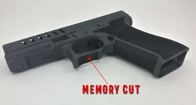 A memory cut is a small notch made in the barrel of a firearm. It is used to provide a reference point for the shooter's support hand/knuckles. This modification is not permitted in a lot of competitions.